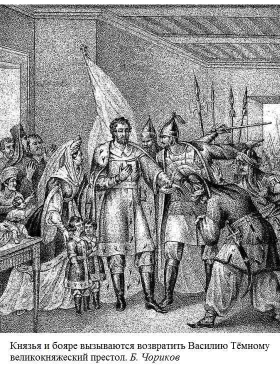 Причина, по которой Василий Темный, правитель малоспособный, одолел дядю и двоюродных братьев, превосходивших его и энергичностью, и храбростью, представляется очевидной.