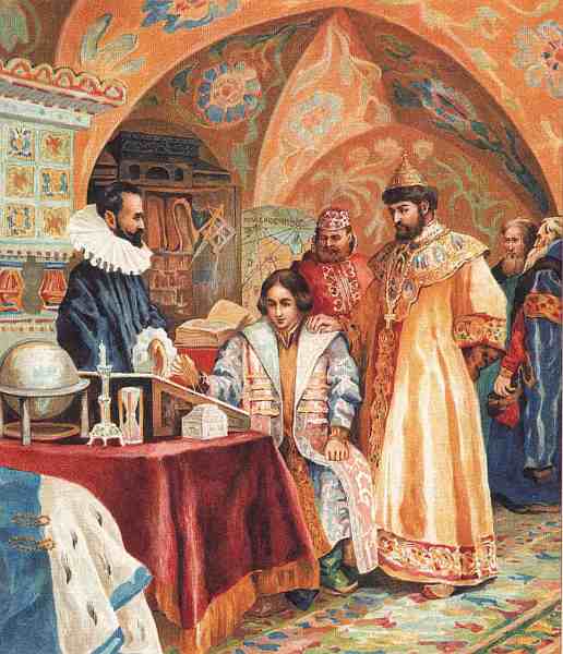 Несмотря на семейные неудачи и горести, Борис деятельно занимался правительственными делами, сносился с Западом: с Англией, Германией, Италией, — сильно хлопотал о том, чтобы добыть в русскую службу разных опытных мастеров. Никогда прежде не было столько иностранцев на службе московской, как при Борисе. Никогда они и не были в такой чести и милости, как при нем. Он понимал цену знания и просвещения, задумал было даже вызвать из-за границы ученых людей, основать школы, где бы иностранцы учили русских не только разным наукам, а также и языкам иностранным; но духовные лица восстали против этого. Они говорили, что Русская земля, несмотря на свою обширность, едина по вере, нравам и языку; если же настанет разноязычие, то поселится раздор и прежнее согласие исчезнет. Как ни странно было это мнение, осторожный царь, не желая идти прямо наперекор духовенству, отказался от своего намерения, но задумал другим путем понемногу освоить русских с западным просвещением. Раньше был обычай посылать русских молодых людей в Константинополь учиться греческому языку; теперь же Борис послал по нескольку человек в Англию, Францию и Германию. Но как будто в оправдание слов духовенства, предостерегавшего русских людей от западного соблазна, посланные за границу молодые люди так обжились там, так им полюбились тамошние порядки, что только один вернулся в отечество, остальные же променяли родину на чужбину.