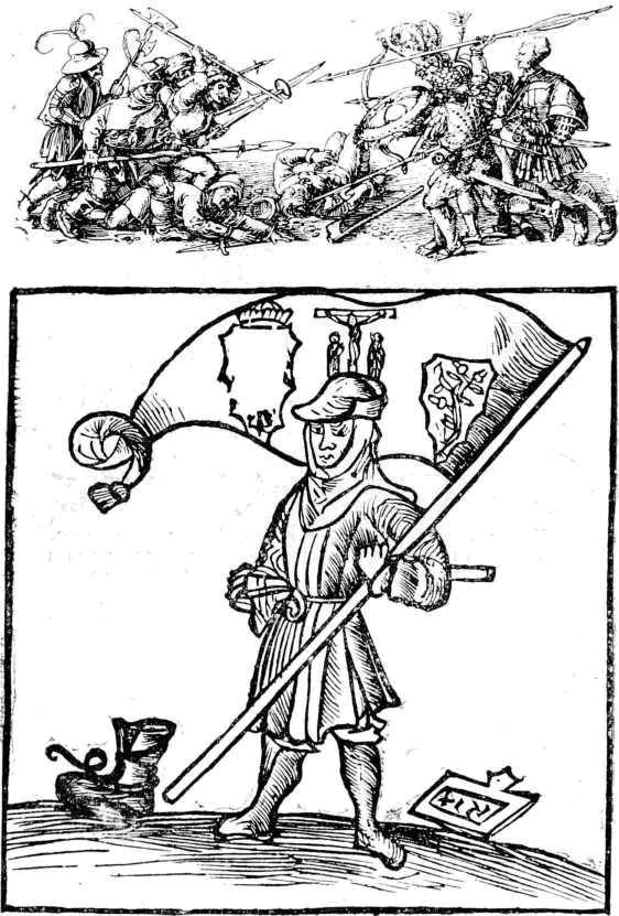 Знамя «Башмака». Гравюра на дереве, 1514 г. (внизу)
