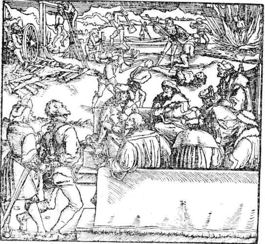 Таким представлял себе народ Томаса Мюнцера. Гравюра на дереве неизвестного мастера, появившаяся в 1527 г., два года спустя после Крестьянской войны. «Этот пророк похож на Мюнцера», — говорил тогда народ.