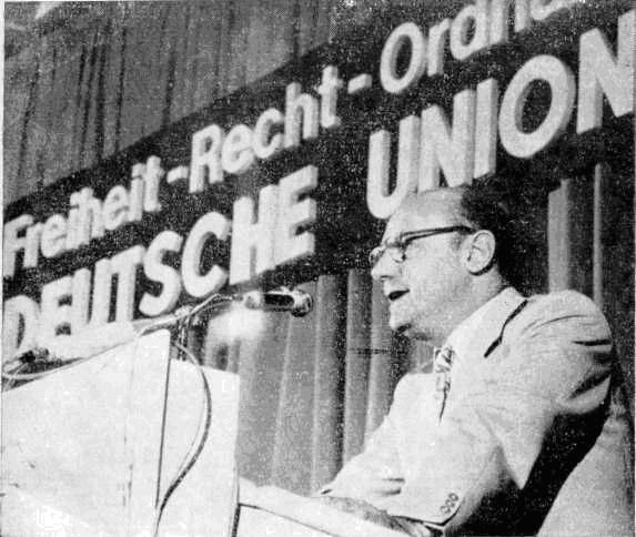 Спекулянт, фашист и компаньон Фуггера. Дитрих Банер держит речь на учредительном собрании фашистско-реваншистского «Немецкого союза», заместителем председателя которого он является; Дюссельдорф, 12 июня 1971 г.