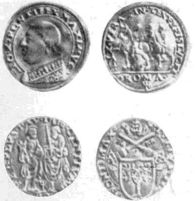 Золото Фуггера... Золотые монеты Ватикана, отчеканенные на монетном дворе Фуггеров в Риме (вверху: Лев X из дома Медичи, папа с 1513 до 1521 г.; внизу: Юлий II из дворянского рода Ровере, папа с 1503 до 1513 г.)