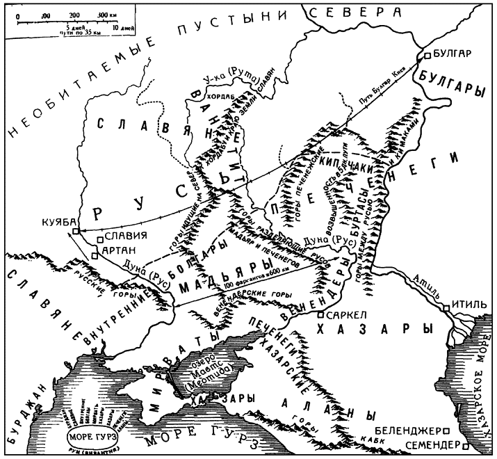 Перенесение на карту владений этой ранней Киевской Руси поможет нам понять ряд отрывочных сведений восточных авторов и устранить некоторые кажущиеся противоречия.