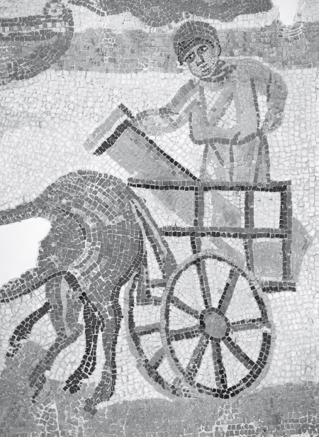 Мозаика изображает погрузку легкой двухколесной колесницы