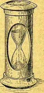 Получалось вроде двух пузырей, соединенных между собой узеньким перешейком-канальцем. В верхнее отделение банки насыпали песок; песок начинал высыпаться через каналец в нижнее отделение банки; но так как каналец был очень узким, то песок пересыпался очень медленно; песок бежал вниз тоненькой струйкой, все время с одинаковой быстротой. Достаточно было взглянуть на нижнее отделение банки, заметить, сколько песку в ней накопилось, чтобы понять, сколько времени прошло.