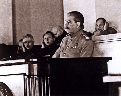 Сталин выступает на торжественном заседании, посвященном XXVI годовщине Великого Октября. Москва, 6 ноября 1943 г.