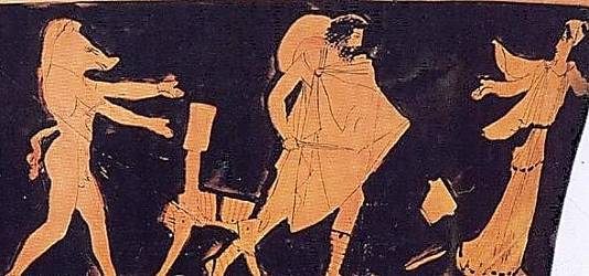 Вообще, «Одиссея» в первых ее песнях кажется вовсе не повествованием о фантастических приключениях царя Итаки, а историей злоключений его сына Телемаха, а также Менелая, который довольно длинно рассказывает о своей судьбе после похода в Трою. Здесь божественная часть сюжета практически невесома – Афина оказывается воплощена во вполне земные персонажи, прежде всего в друге Одиссея Менте (Ментесе), который потом сопровождает Телемаха в Пилос. Никаких откровений от Мента не исходит – только разумные рекомендации юному Телемаху.