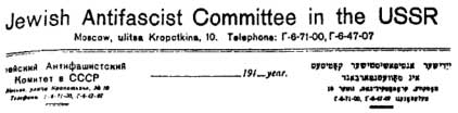 Официальный бланк ЕАК на английском и русском языках и идиш.