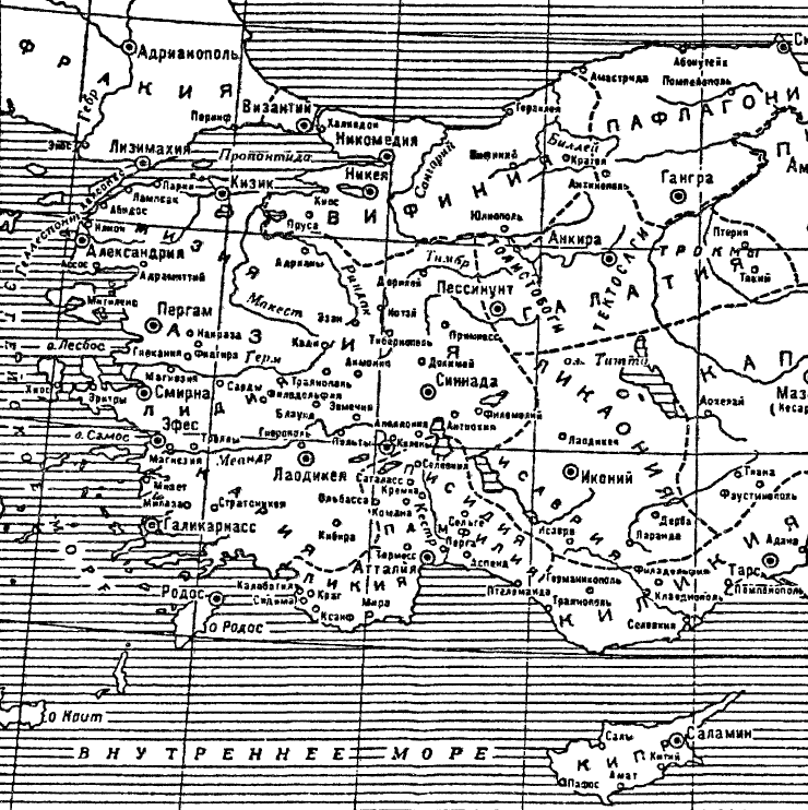 Чтобы составить себе некоторое представление о положении и развитии Малой Азии в первые три века нашей эры, насколько такое представление возможно для страны, оставленной совершенно без внимания нашими источниками, мы обратимся, принимая во внимание консервативный характер римского провинциального управления, к более древним областным делениям и к предшествующей истории отдельных земель.