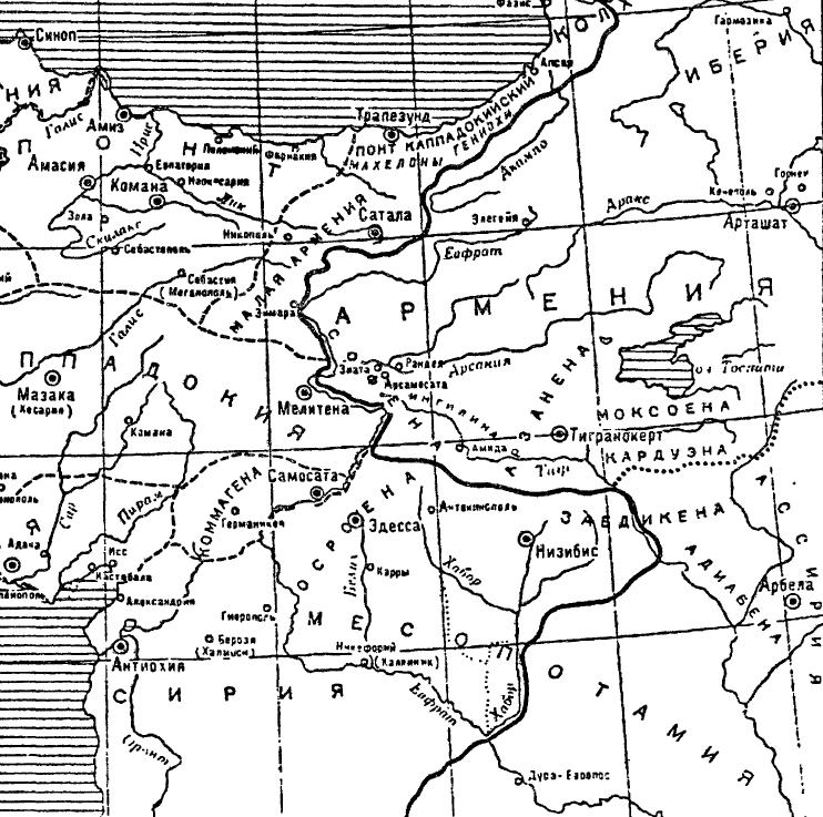 Когда в момент возникновения новой императорской формы правления было произведено разделение административных функций между императором и сенатом, вся непосредственно подчинявшаяся в то время империи область Малой Азии досталась последнему; о. Кипр, первоначально состоявший под императорским управлением, через несколько лет тоже перешел к сенату. Так возникли здесь 4 сенатских наместничества: Азия, Вифиния с Понтом, Кипр и Крит с Киреной. Под императорским управлением находилась сначала только Киликия как часть провинции Сирии. Но поступавшие позже в непосредственное имперское управление области здесь, как и во всей империи, подчинялись императорскому наместнику; так, еще при Августе из внутренних областей Галатского царства была образована провинция Галатия, и прибрежная область Памфилия была передана другому наместнику, причем при Клавдии ему же была подчинена Ликия. Далее, при Тиберии императорским наместничеством сделалась Каппадокия. Киликия, получив собственного наместника, также, естественно, осталась под управлением императора. Не считая того, что Адриан обменял важную провинцию Вифинию и Понт на незначительную Ликийско-Памфилийскую провинцию, этот порядок оставался в силе и в дальнейшем, пока в конце III в. соправительство сената не было почти полностью упразднено. В начале империи границу составляли сплошь вассальные княжества. После того как они были присоединены к империи, из всех этих административных округов, помимо Кирены, империя имела общую границу лишь с Каппадокией, поскольку в то время к Каппадокии была присоединена также северо-восточная пограничная область до самого Трапезунда184; это наместничество также не граничило с совершенно чужими Риму землями; его северными соседями были зависимые племена на Фазисе, а далее Армения, представлявшая собой вассальное царство, юридически, а в известной степени и фактически принадлежащее к империи.