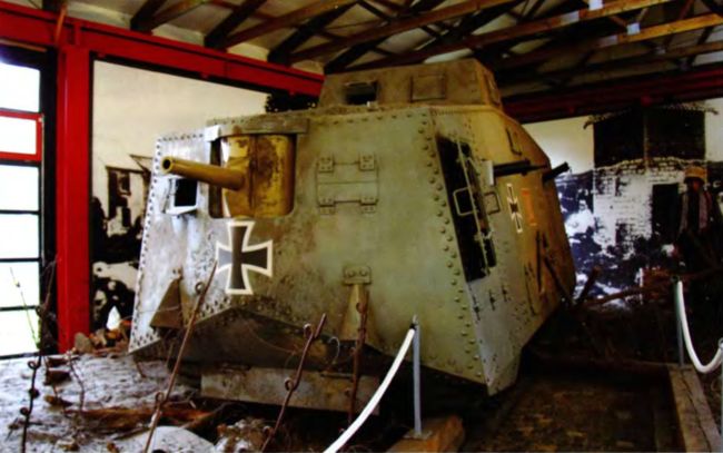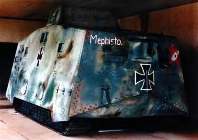 11. Реплика танка A7V № 563 «Вотан», изготовленная в Германии и установленная в танковом музее (город Мунстер) в 1990 году. Образцом для восстановления «Вотана» послужил танк «Мефисто».