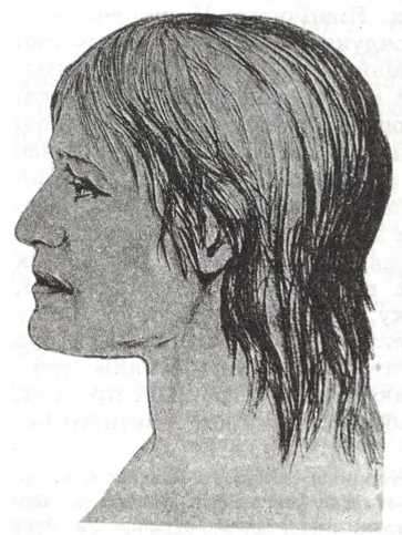 Рис. 154. Голова жінки з поховання культури кулястих амфор біля с. Довге Тернопільської обл. Реконструкція Г. В. Лебединської.