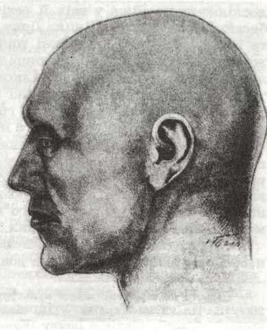 Рис. 155. Голова чоловіка з поховання ямної культури. Новопилипівка, курган 5, поховання 4. Реконструкція М. М. Герасимова.