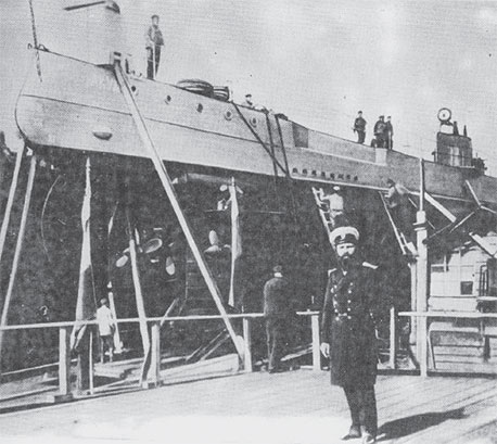 И. Г. Бубнов около подводной лодки «Акула» на стапеле Балтийского завода