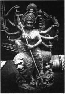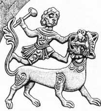 Эти верования и традиции — один из наиболее архаичных пластов — принесли арийцы из Украины в древнюю Индию, где эти обычаи кое-где сохраняются до сих пор. В частности можно вспомнить древний арийский обычай посвящения царя, который до сих пор сохранился в Индии среди царей-кшатриев Джайпура (Раджастхан). Заключается он в следующем: вооруженный мечом воин идет в лес, вызывает на бой тигра (львы в тех местах практически исчезли) и вступает с ним в поединок один на один. Когда тигр будет побежден — с ним проведут царский ритуал сожжения (249, и, 122). Интересно, что у индийских царей до сих существует традиция добавлять к своему имени титул Сингх, то есть лев. Нам интересен еще один момент, который присутствует в одном из их мифов. Когда Великая Богиня Махадеви (дословно: могущественная дева) Дурга (жена верховного бога Шивы) вышла на поединок с Махиша сурой — верховным вождем титанов-асуров, она спустилась на землю, призвала к себе царя зверей — могущественного льва и велела ему везти себя в бой на спине, как грозную наездницу. С радостью распластался перед ней лев, но тут же появился и не менее сильный тигр и также лег у ее ног. И сказала им Дурга, что они оба равновелики в своей мощи и свирепости, и одинаково отданы божественной воле, а потому в образе льва люди будут видеть тигра, а в образе тигра — льва (92, 379). А современные ученые, исследуя кости пещерного льва, вымершего в Украине, как раз и утверждают, что его анатомическое строение костей и черепа имеет много общего с тигром; в науке даже существует его другое название — тигролев (205, 37). Не является ли этот миф отголоском верований древних арийцев, когда еще их Великая Богиня ездила именно на пещерном льве (тигрольве) по Карпатских горах и боролась с демонами? А придя в Индию, арийцы встретили здесь две отдельные породы львов и тигров, отчего и возник этот миф. Подтверждает эту версию и то, что в Индии, например, гуджаратского льва местные жители до сих пор называют «унтия-бах» или «верблюжий тигр» (36, 366).