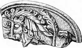 Как мы уже упоминали выше, сарматы изображали воинов, а также богинь верхом на львах. Именно отсюда на киевскую фреску попало изображение матери богов в колеснице, запряженной львами. Сохранились две парных фалары сарматского вождя, на которых изображены головы львов с зажатыми в пастях копьями или стрелами. Напомним, что у казаков при рождении сына было принято класть ему «на зубок» стрелу, которая позже, с распространением огнестрельного оружия, была заменена пулей. Русские князья, продолжая традиции скифских и сарматских царей, также почитали льва, о чем свидетельствуют многочисленные находки с изображениями львов на украшениях, даже на стенах христианских храмов в древнем Киеве, Галиче и других городах.