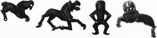 Три фигурки из Мартыновского сокровища, а также лев, который глотает солнце.