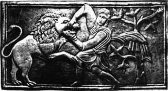 Поединок со львом. Изображение на плите Киево-Печерской лавры.