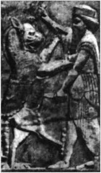 Подобные поединки существовали и у других народов. В культе Митры — иранского бога Солнца — обряд посвящения включал в себя переход вооруженного иницианта через глубокое подземелье, где в темных пещерах на него с диким ревом нападали жрецы и храмовые служители, разодетые львами, тиграми, леопардами, медведями, волками и другими хищными зверями. В тех условных баталиях инициант подвергался большой опасности, хотя и жрецам нередко доставалось. Говорят, что римский император Коммод в своем посвящении зашел в этой ритуальной борьбе так далеко, что убил одного из жрецов, который нападал на него в образе дикого зверя. Мужественно пройдя это посвящение, инициант получал титул «Лев Митры» (58, І, 40]. Этот обряд уходит своими корнями еще в древние посвящения иранских жрецов-магов. Ритуальный поединок царя-жреца с дикими животными был обязательным элементом обряда коронации в Малой Азии, Греции, Македонии, Сирии и других странах.
