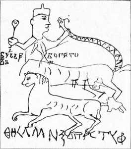 Победа князя над львом и змеем. Граффити из Софийского собора.