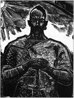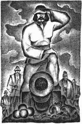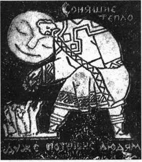 Великан дает людям солнце и огонь. Рисунок С. Остроценко.
