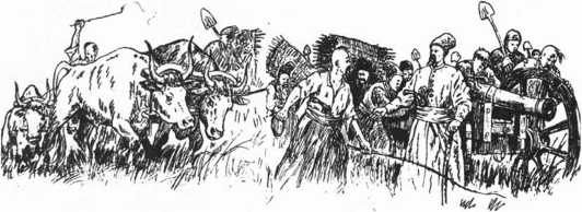Левенцы укрепляют Бушу. Рисунок И. Манца.