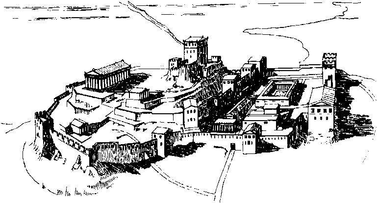 Рис. 54. Акрополь Пантикапею за елліністичної доби. Загальний вигляд. Реконструкція В. П. Толстикова.