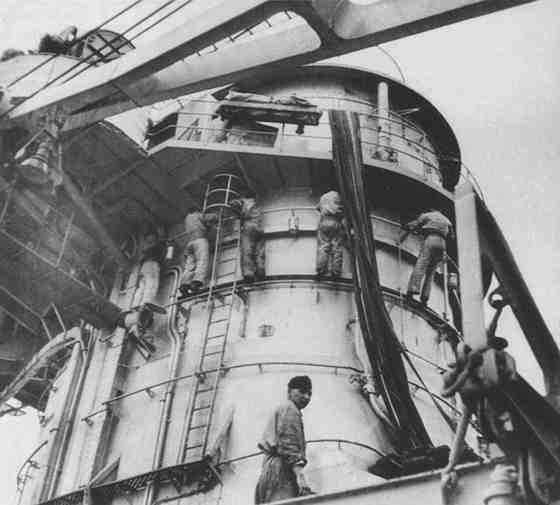 «Шарнхорст» в ходе достройки, вид на дымовую трубу.