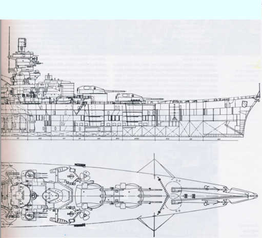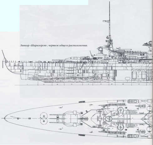 Линкор «Шарнхорст», чертеж общего расположения.