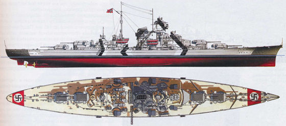 В июне 1936 года на верфях Гамбурга и Вильгельмсхафена заложили «Бисмарк» и «Тирпиц» — крупнейшие боевые корабли из когда-либо строившихся в Германии. Хотя официально было заявлено, что водоизмещение новых линкоров составляло 35 тыс. т, в действительности это значение превышалось чуть ли не в полтора раза!