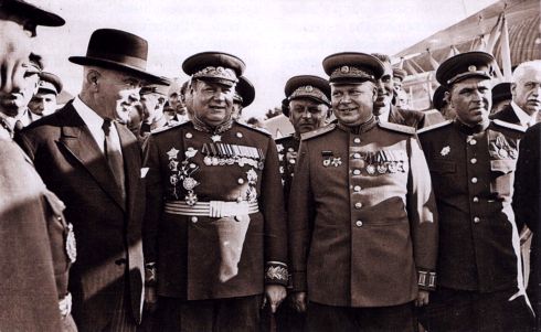 Прибытие маршала Толбухина в Бухарест, как председателя Союзной Контрольной Комиссии. Румыния, Бухарест, 1945 г.