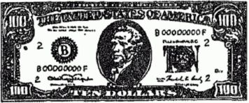 Иногда на банкноте оставались слова «Ten dollars», что означает «десять долларов», и изображение президента Гамильтона, в то время, как на стодолларовом банкноте изображение Б. Франклина, но это, как говорится, детали.