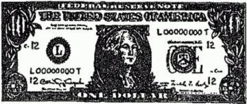 Изготовляя вторую разновидность подделок, используют фотопечать. Рисунки получаются не слишком четкими. Фальшивку можно распознать, только внимательно изучив мелкие детали изображений. На лицевой стороне доллара должны быть помещены портреты президентов и государственных деятелей США: 1 доллар — Дж. Вашингтон, 2 доллара — Т. Джефферсон, 5 долларов — А, Линкольн, 10 долларов — А. Гамильтон, 20 долларов — Э, Джексон, 50 долларов — У. С. Грант и 100 долларов — Б. Франклин. Особенно четким и чистым должен быть заштрихованный фон вокруг портрета. Часто на подделке штрихи сливаются, фон получается темным, неясным.