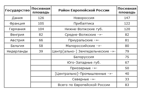 В 1916 году количество земли на душу населения выражается следующей таблицей: