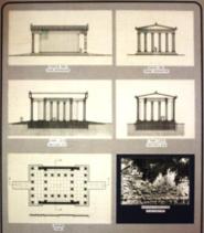 Здание прямоугольной формы выполнено в стиле ионического храма с шестью колоннами вдоль двух коротких сторон. Вдоль длинных сторон шли стены с 14 коринфскими колоннами, создающее пространство, подобное античному двору – перистиль – с внутренней колоннадой. Вдоль стен шли скамьи для отдыха. Здание было приподнято на трехступенчатую платформу.