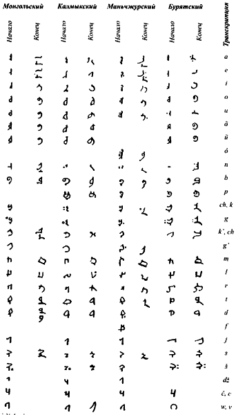 Рис. 170. Монгольский, калмыкский, маньчжурский и бурятский алфавиты.