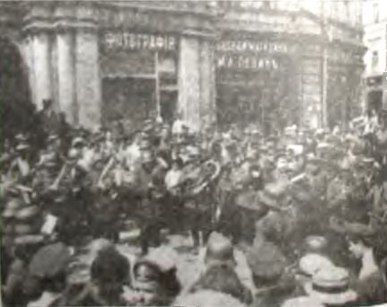 Военныи оркестр одного из немецких пехотных полков на Думской площади (сейчас это Майдан Незалежности)