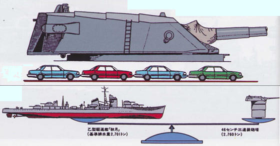 Вес каждой из 460-мм башен японских суперлинкоров примерно равнялся водоизмещению большого эсминца.