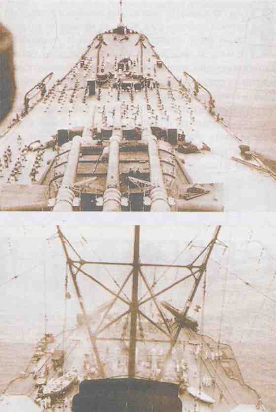 Вверху: линкор «Мусаси» в походе