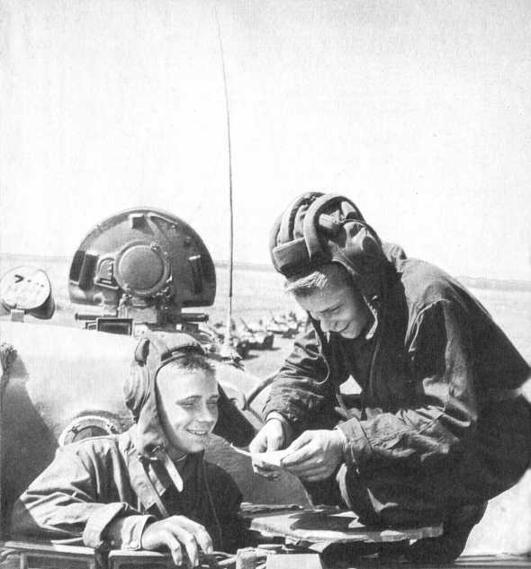 Боевые действия — это не только стремительный, безудержный бросок в атаку. Это и длительный марш по бездорожью, и подводная переправа, и заправка танка горючим и боеприпасами, и техническое обслуживание материальной части перед боем. Так же, как солдата готовят к предстоящим боевым действиям, проверяя его экипировку, оружие, снаряжение, так и современный танк нуждается в проверке вооружения, органов управления, контрольных приборов, двигателя, ходовой части, средств связи и различного специального оборудования. Современные советские танки созданы с учетом опыта войны и последних достижений науки и техники. Они значительно совершеннее лучших танков второй мировой войны. В них нашли отражение новейшие достижения электроники, радиотехники, механики. Все это облегчает управление танком, но одновременно налагает на танкистов обязанность поддерживать механизмы танков в отличном, технически исправном состоянии. Вот пример: стабилизатор орудия позволяет вести прицельный огонь из орудия и пулемета, поражать цели с ходу. Упростилась при этом работа наводчика? Конечно. Но, допустим, один из блоков системы плохо отрегулирован, в результате чего марка прицела колеблется и смещается на 1 мм. Простой подсчет показывает, что при этом попадание снаряда при дальности 1000 м смещается на 1 метр. Этого уже вполне достаточно, чтобы снаряд пролетел мимо цели. А ведь каждый блок — это десятки транзисторов, ламп, конденсаторов, проводников.