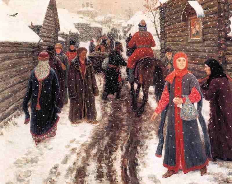 После обеда царь ложился отдыхать и почивал обыкновенно три часа или два — меньше в том случае, когда ходил в баню или отправлялся смотреть на кулачный бой, любимую народную потеху. Спать после обеда было в обычае у всех русских. После отдыха царь шел к вечерне, после которой проводил обыкновенно несколько времени с царицею и тешился шутами, карлами и карлицами, которые всячески дурачились, кувыркались, пели песни. Это было самой любимой забавой Федора. Несмотря на свою доброту, он иногда тешился и другой потехой, которая наряду с кулачными боями свидетельствовала о грубости тогдашних нравов, — смотрел на бой с медведями.