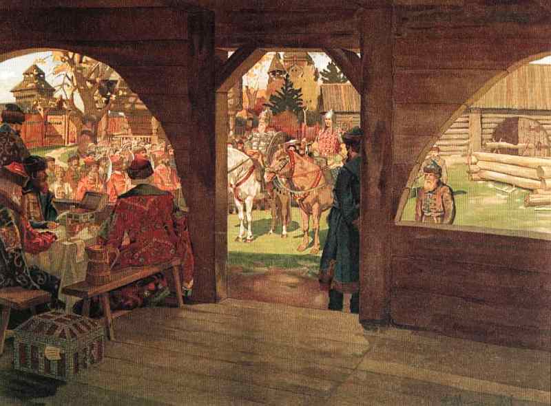 После утренней молитвы царь посылал к царице спросить, хорошо ли она почивала, в добром ли она здравии, а немного времени спустя сам шел здороваться с ней, и оба шли в свою домовую церковь к заутрене, которая длилась около часа. Вернувшись из церкви, царь садился в большом покое, куда приходили к нему на поклон бояре, которые были в милости при дворе. Здесь царь и бояре, если имели что сказать, беседовали между собой. Так бывало всякий день, если только здоровье царя или какие-либо случаи не мешали этому.