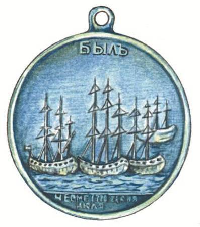 Медаль в честь победы в Чесменском сражении Всю Европу потрясла победа россиян над турками, тем более что она была достигнута не числом, а умением. Военно-морское искусство ведения боя пополнилось несколькими новыми тактическими приемами и принципами ведения боя. В полдень русские суда приблизились на подходящую для выстрела дистанцию, дали залп из всех орудий по заранее намеченным целям. Несколько турецких кораблей получили серьезные повреждения, сильнее всех пострадал флагман «Реал-Мустафа». Но и русский флагман «Евстафий» также получил повреждения. Команда русского судна сблизилась с турецким и пошла на абордаж. Тем временем пожар с «Реал-Мустафы» перекинулся на русский корабль, и спасти его не удалось. Вся команда «Евстафия» погибла. Взрывы флагманских кораблей посеяли настоящую панику среди турок. Двухчасовой бой в Хиосском заливе закончился гибелью по одному кораблю с каждой стороны. Следующей ночью по общему сигнал у русские корабли снялись с якоря и направились в глубь бухты. Через некоторое время они встали на якорь и открыли шквальный артиллерийский огонь по турецким судам и береговым батареям. На многих судах начались пожары, и вскоре вся бухта напоминала сплошной пылающий факел, а турецкие корабли один за другим взрывались. Пожар бушевал всю ночь, а к утру от турецкого флота остались только обломки, плавающие на поверхности воды.