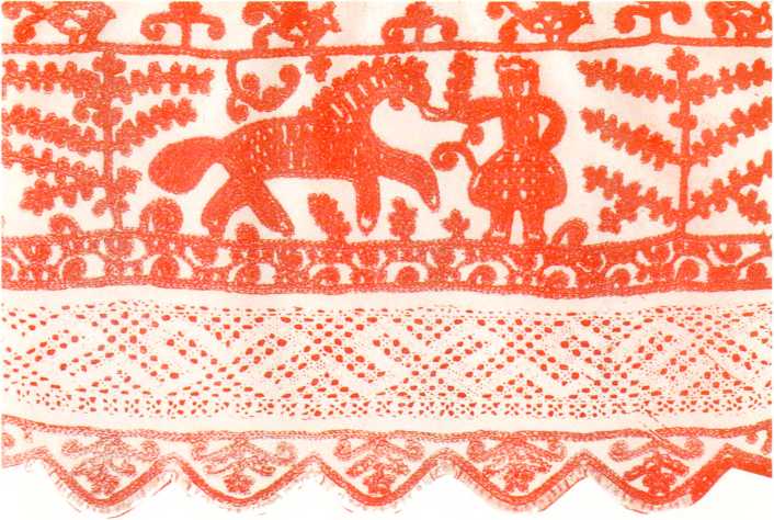 5—7. Кружево, вышивка. Конец 19 в. Вологодская губ.