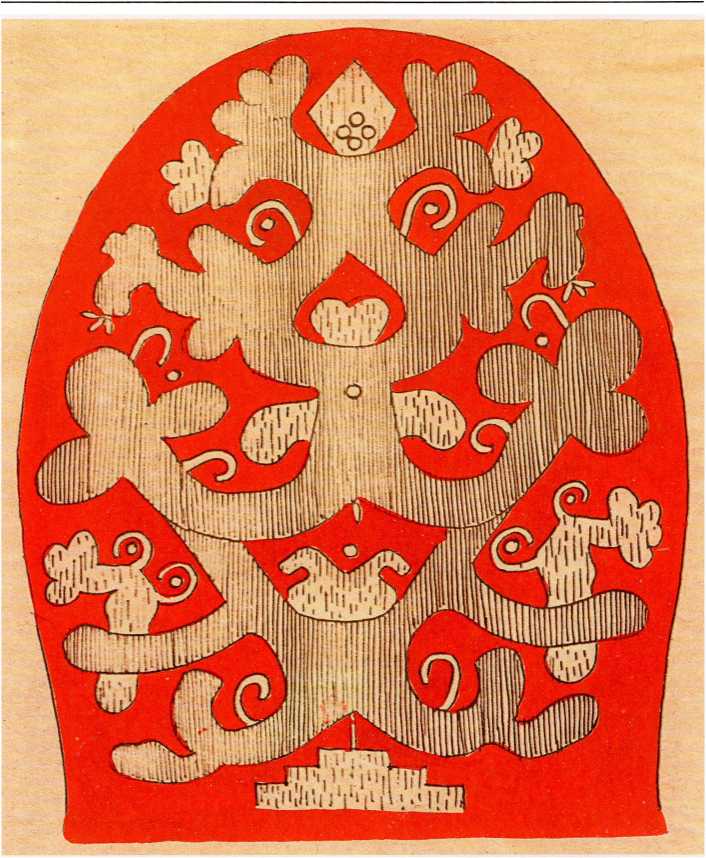 Рис. 13. Золотная вышивка женского повойника («борушки»). Начало 19 в. Тарнога, Вологодская губ.
