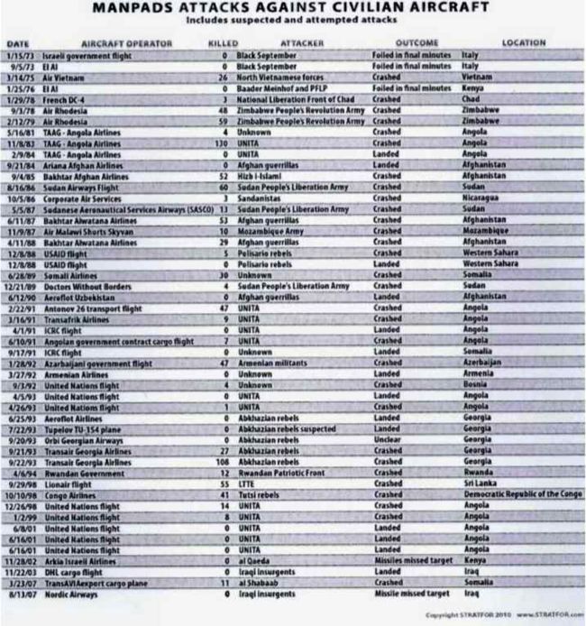Источник: MANPADS Attacks Against Civilian Aircraft, 01.02.2010 (www.stratfor.com)