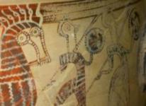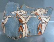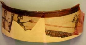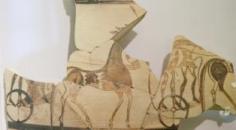 Кратер фрагмент росписи с изображением воинов и колесниц, Тиринф, нижняя цитадель, 1180-1050 гг. до н. э.