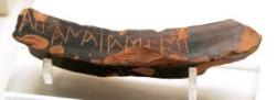 Фрагмент обода кратера с надписью "???????? ???" (принадлежу Афине), 6 в. до н. э.