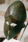 В экспозиции музея можно видеть шлем 11 в. до н.э. – одно из древнейших изделий такого типа. И следует отметить, что это шлем открытого типа. Шлем коринфского типа, созданный полтысячелетия спустя, мог использоваться воином только в сомкнутом строю-фаланге. Закрывая боковой обзор, в строю такой шлем обеспечивал защищенность от ударов оружия противника в лицо. Более ранний шлем позволял сражаться в поединках, которые были более характерны для греков гомеровского периода.