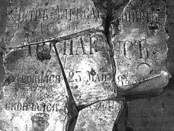 По словам краеведа Аркадия Николаенко, «судьба этого камня нелегка. В 1919 году церковь сгорела. Факт тот, что мне в детские годы (конец 1960-х—начало 1970-х годов) довелось видеть этот монумент на том самом месте! Не помню уже, стоял он или был повален — но точно был цел. Я был тогда настолько поражен увиденным среди густого молодого ельника могильным камнем, что не поленился взять блокнот и списать с него надпись. Возможно, это и был тот рок, который в конечном счете определил дальнейшую цель моей духовной жизни, ибо спустя не один десяток лет я вновь вернулся к теме того времени и стараюсь найти сколько-нить свободного времени на поиски утраченного. Увы, в 90-е годы XX века камень был варварски уничтожен, разбит на куски непомнящими предков своих. К счастью, по инициативе заведующей краеведческим музеем школы № 434 в Сестрорецке (ул. Мосина, 63) остатки памятника с помощью военного грузовика были перевезены и хранились при этом музее. Само же место захоронения еще в мои детские годы определить точно удалось бы вряд ли. Теперь же оно и вовсе стало недоступным: на его месте стоит база отдыха, тщательно огороженная...».